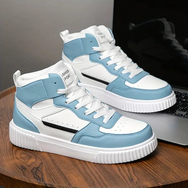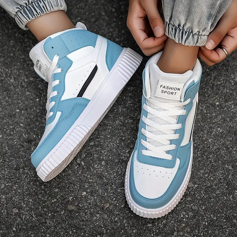 Harf Dekorlu, Beyaz ve Açık Mavi Renk Bloklu Tasarımlı, Her Mevsim Giyilebilen EVA Tabanlı, Rahat Yüksek Topuklu Bağcıklı Ayakkabılar, Koşu, Günlük ve Parti Kullanımı İçin Mükemmel, Her Mevsim Ayakkabı, Kumaş Astarlı İç Kısım